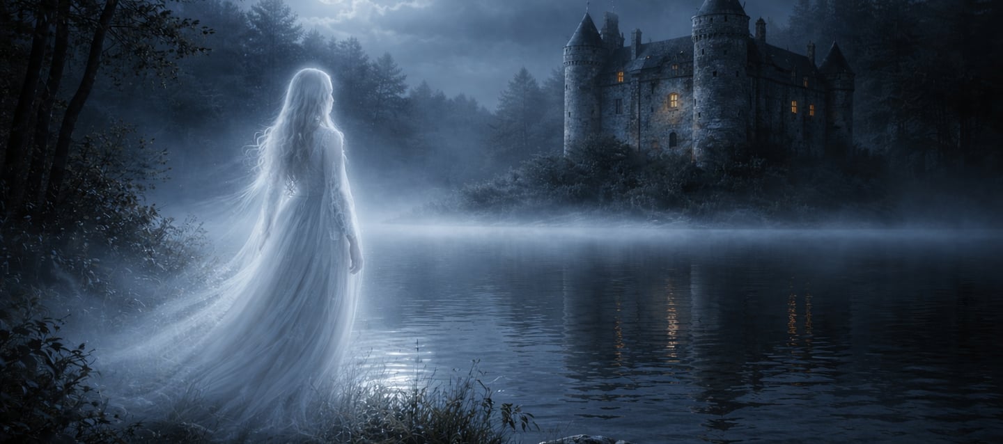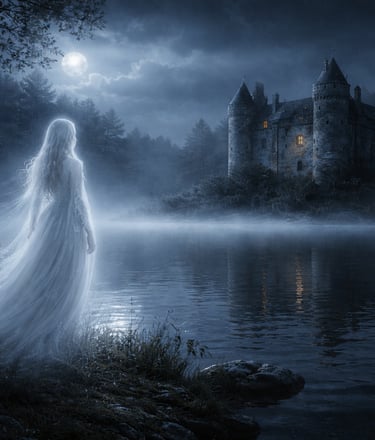 Des voyageurs affirmaient apercevoir une forme pâle se reflétant dans l’eau sombre de l’étang. Certains disaient qu’elle apparaissait seulement les nuits de pleine lune. D’autres racontaient que l’on pouvait parfois entendre un léger bruissement de robe dans les couloirs du château.